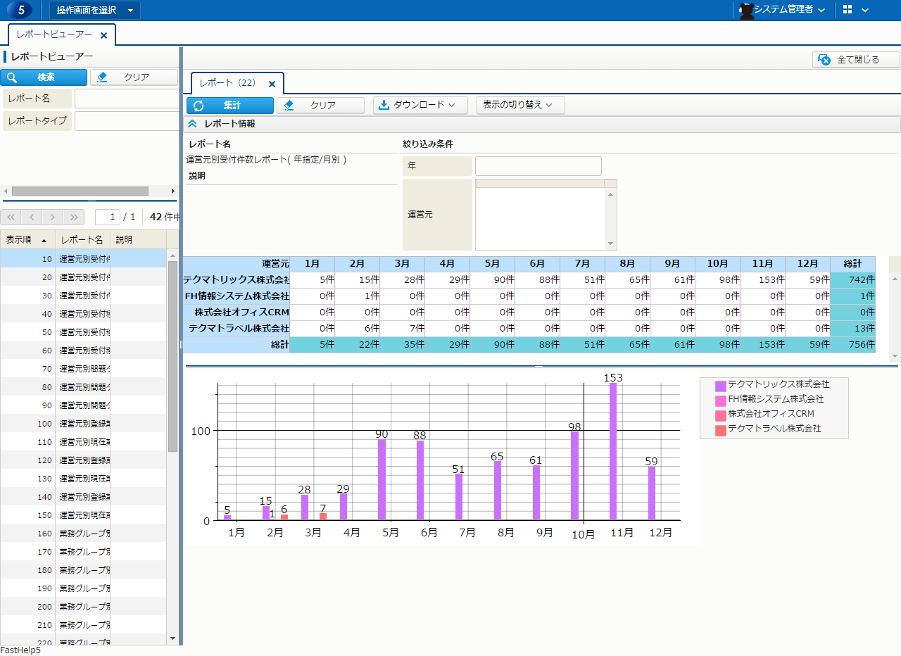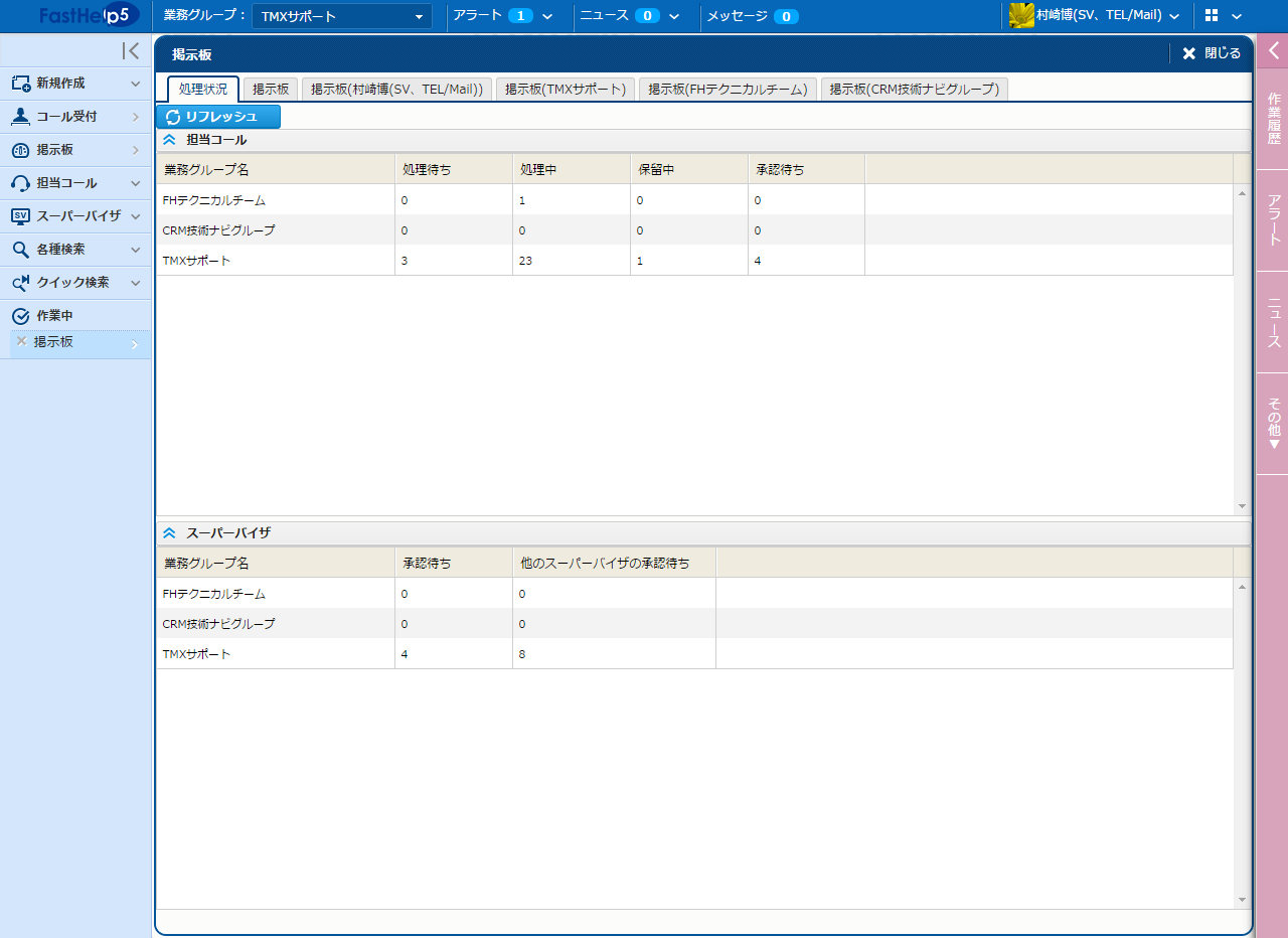 - 問い合わせ履歴を集計するための機能が集まった画面です。