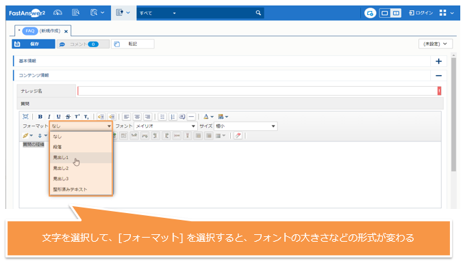 - 選択したナレッジ分類の設定に合わせた [ナレッジ編集] 画面が表示される。