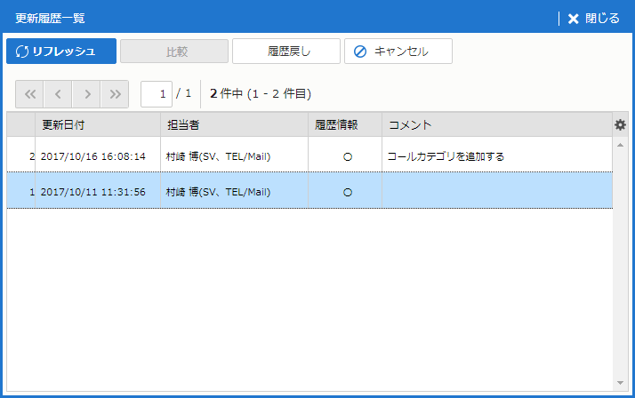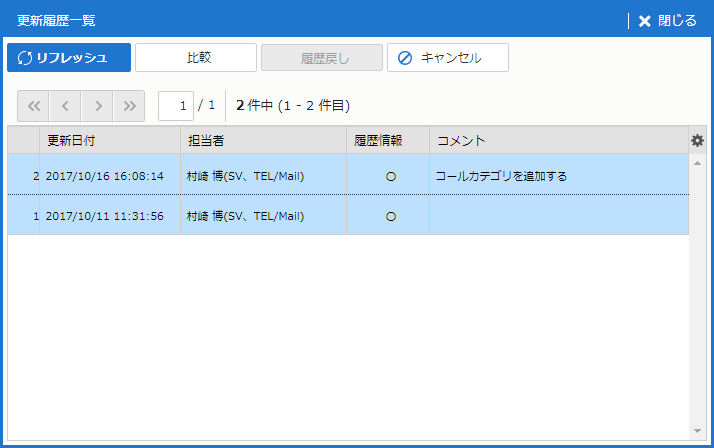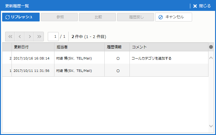- 更新履歴同士の比較手順については、以下を参照してください。