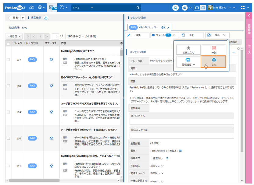 ナレッジには、評価 ("役立った" ... "役立たなかった" ) やコメントを追加できます。