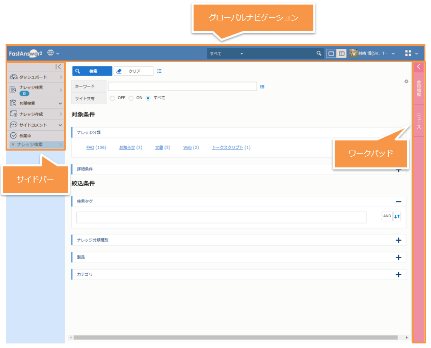 [ナレッジ管理] 画面の画面構成について説明します。
