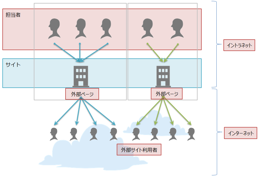 次に、サイト、担当者、外部サイト利用者の関係を示す図を載せます。