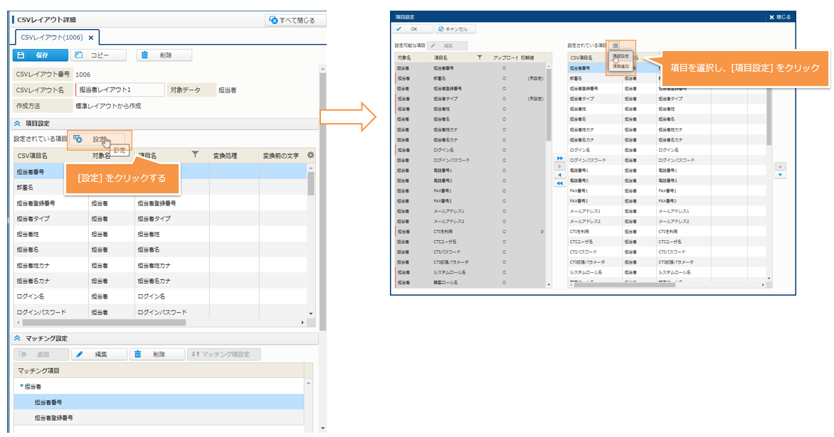 - 「データ管理 - CSVレイアウト - [CSVレイアウト] を登録・編集する - 項目設定を行う」