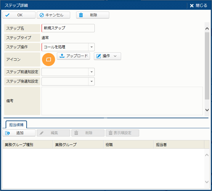 - 「業務管理 - 業務グループ - サブウィンドウ - コール作成設定詳細」