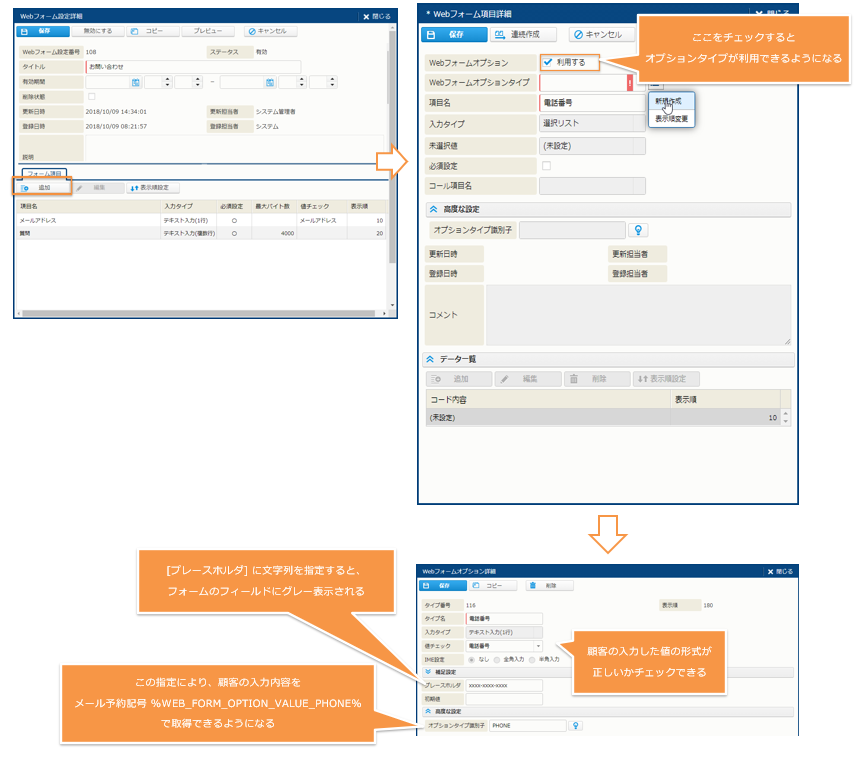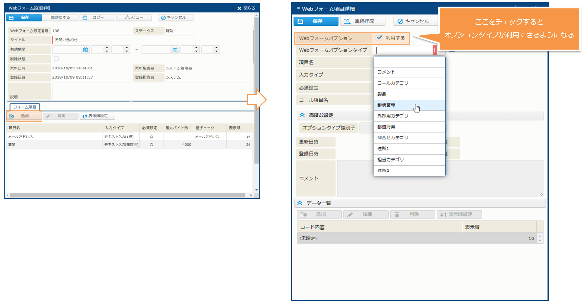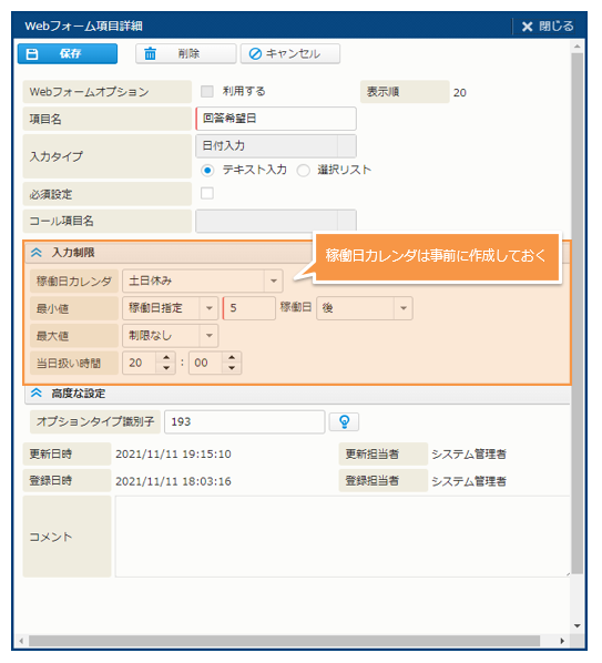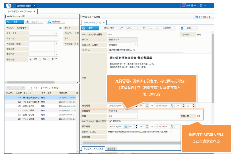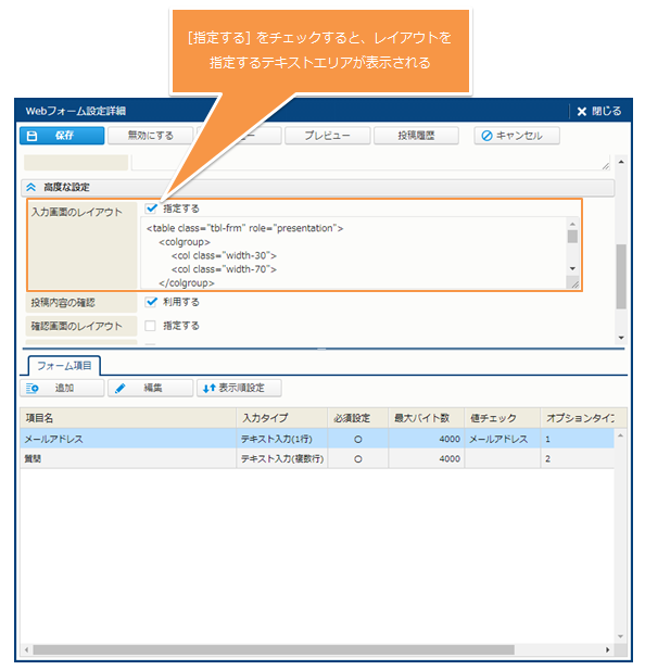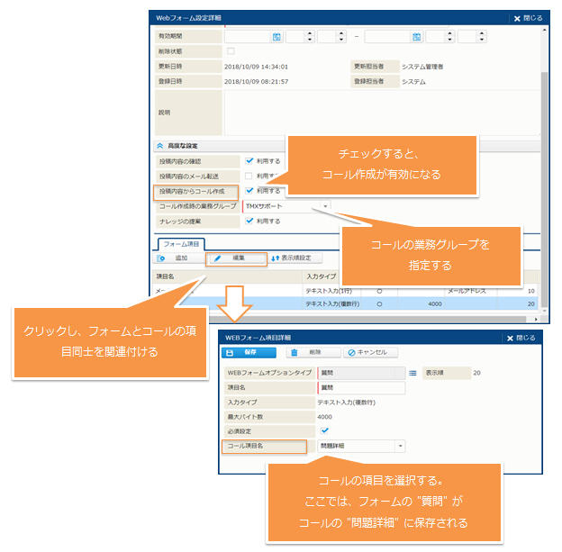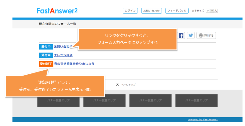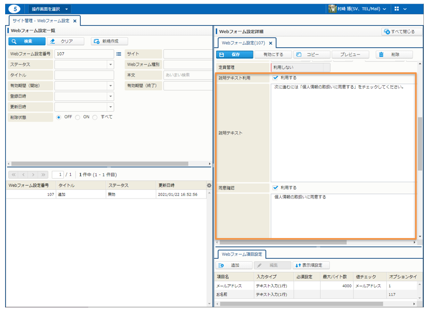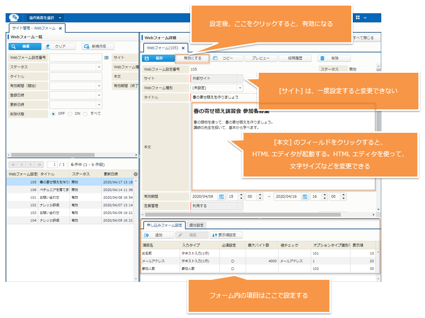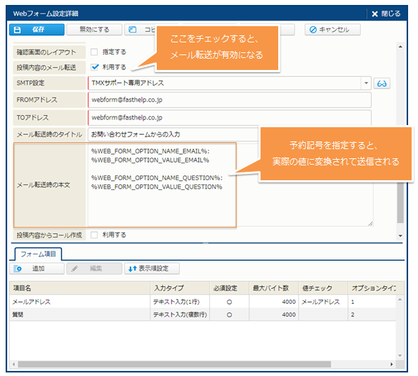 "Webフォーム" とは、外部ページに "入力フォーム" を表示する機能を指します。外部サイト利用者がこのフォームで投稿した内容は、コール保存やメール転送ができます。