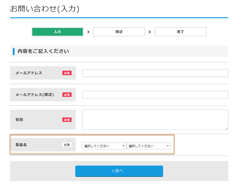 製品は、担当者がナレッジ登録時に指定できる項目で、どの製品に関係したナレッジかを登録することができます。製品を指定してナレッジ登録することにより、製品を条件としたナレッジ検索・レポート集計ができるようになります。