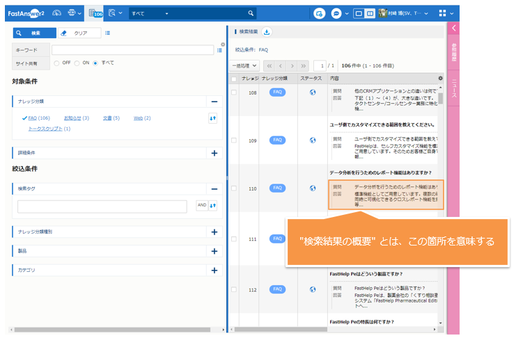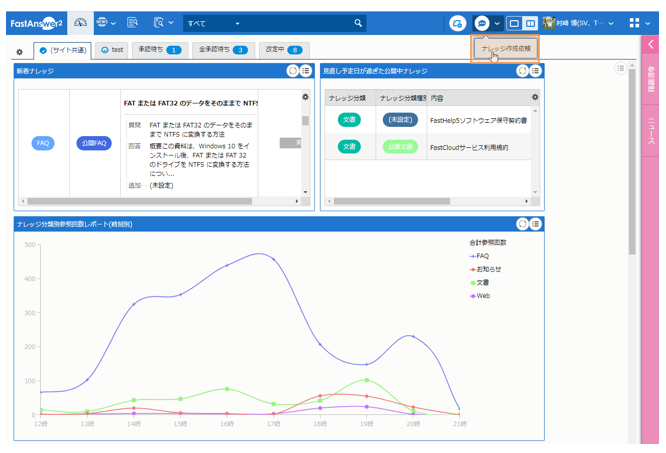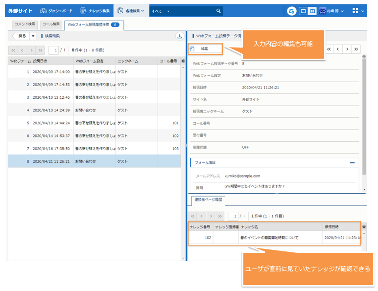 外部ページで収集したアンケートは、[ナレッジ管理] で確認できます。