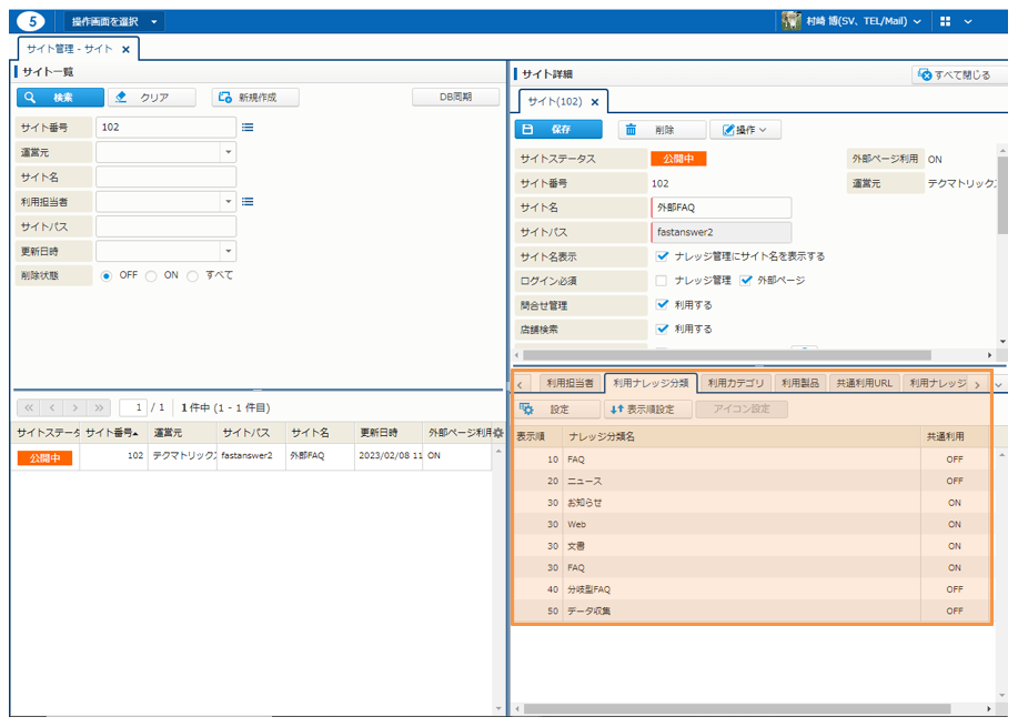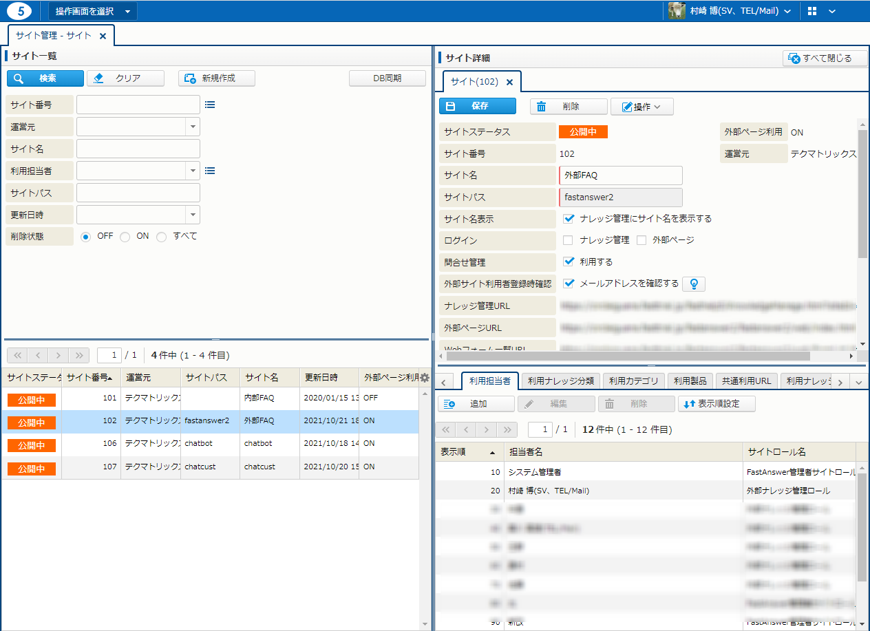ナレッジとナレッジを利用する担当者をまとめる単位を "サイト" といいます。