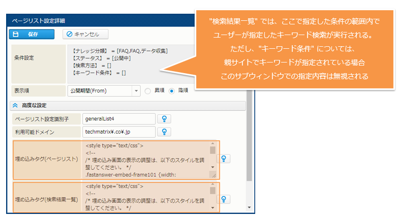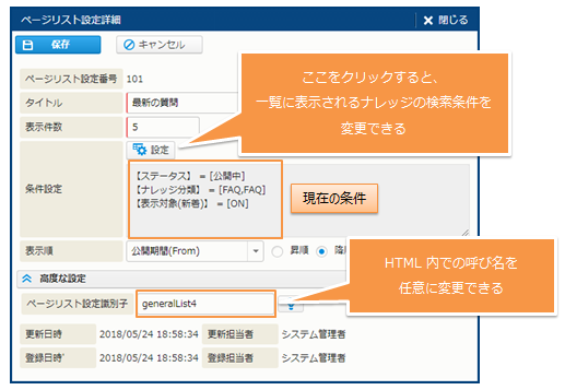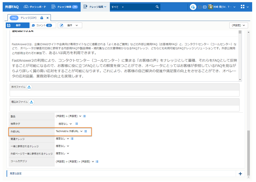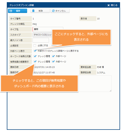 - [ナレッジ詳細] 画面での指定内容については、以下を参照してください。