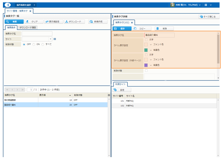 このサイトで利用する "検索タグ" です。検索タグは、頻繁に利用する重要な検索条件を検索タグとして登録しておくと、ユーザは、 1 クリックでその検索ができるようになります。