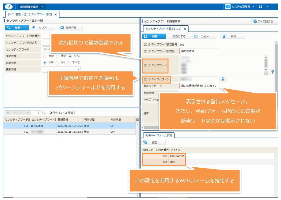 同じ意味として検索される用語 (同義語) を登録することができます。