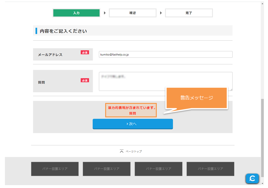 次に、[サイトのフィードバック] サブウィンドウの画面イメージを載せます。