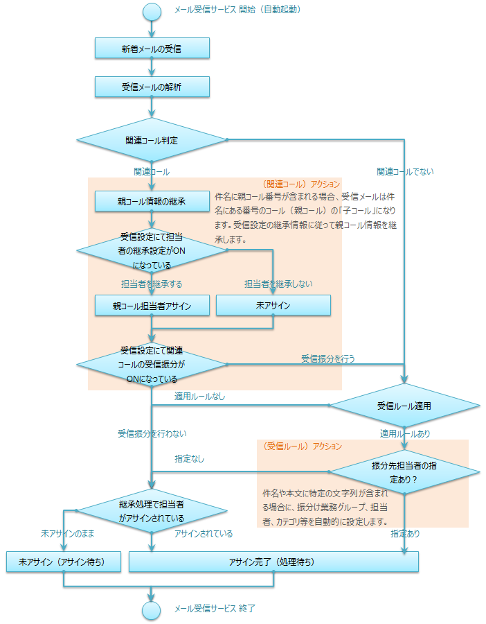 "メール受信サービス" による担当者決定の流れを、以下に示します。