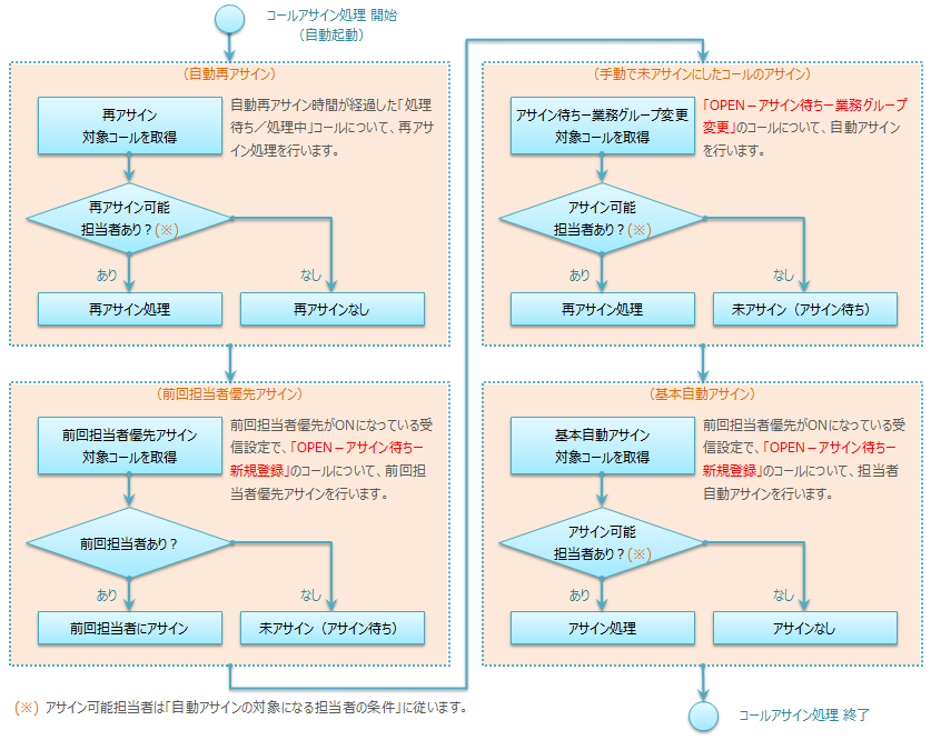 "コールアサインサービス" による担当者再アサインの流れを、以下に示します。
