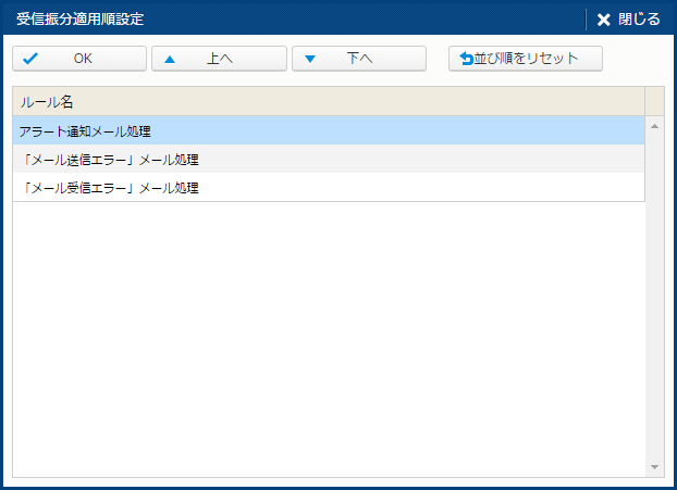 | 適用順序 | - | - | - | 受信ルールが適用される順序。 |