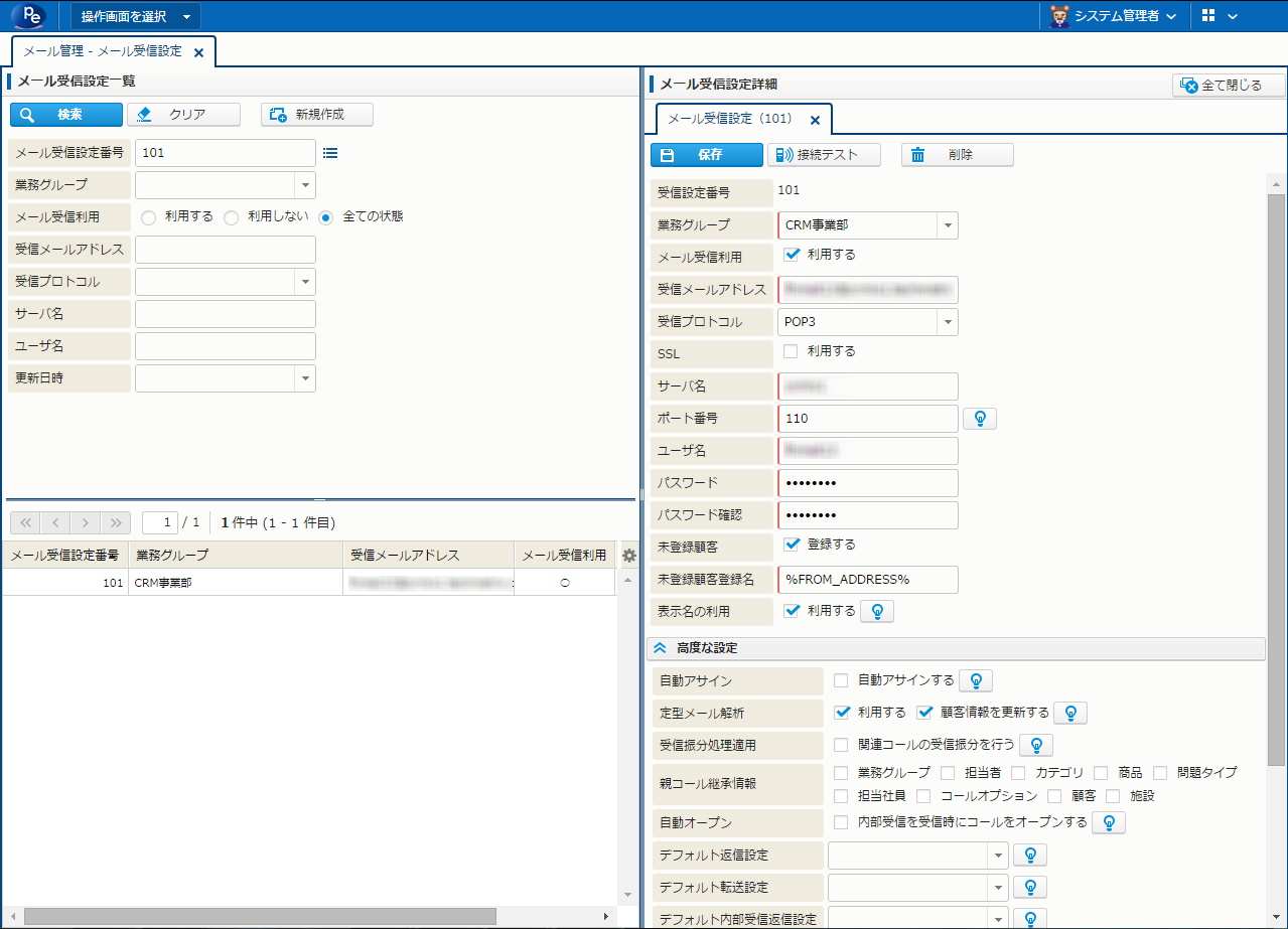 | 接続テスト | サーバへの接続テストを行う。 | メール受信設定参照権限 |