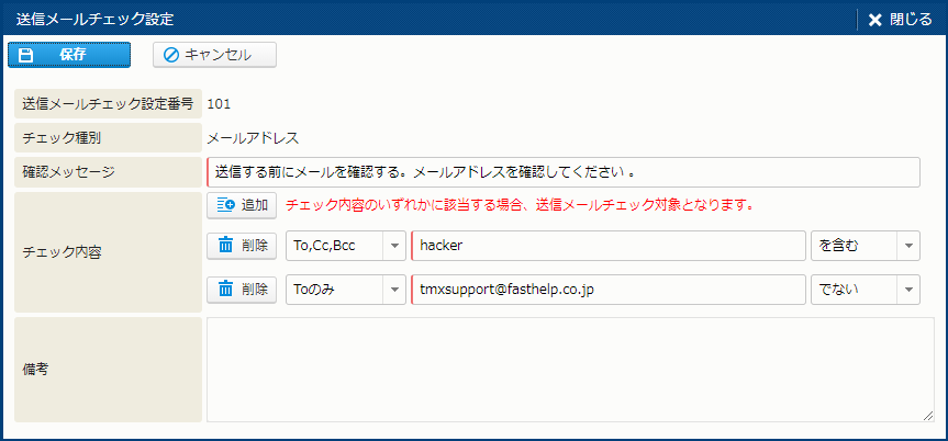 [送信メールチェック設定] タブ - [追加] / [保存]