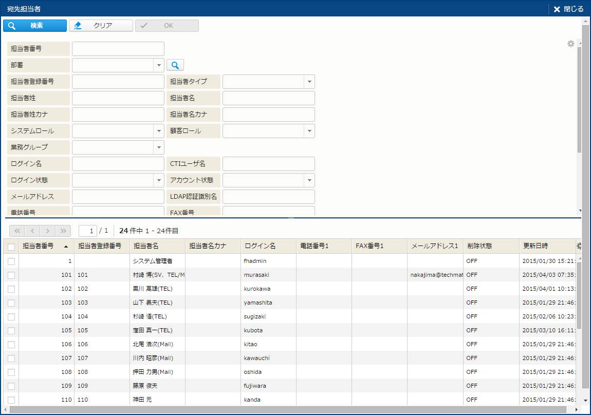 - 「マスタ管理共通エリア - マスタ管理共通エリア - [担当者検索] サブウィンドウ」