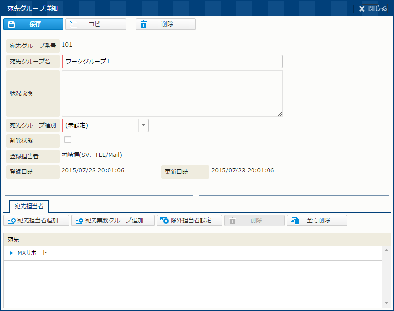 | 登録担当者 | このグループを登録した担当者。 |