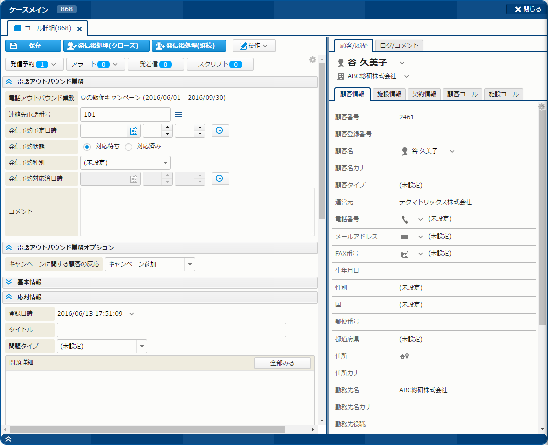 - 「コール管理 - ケースメイン」