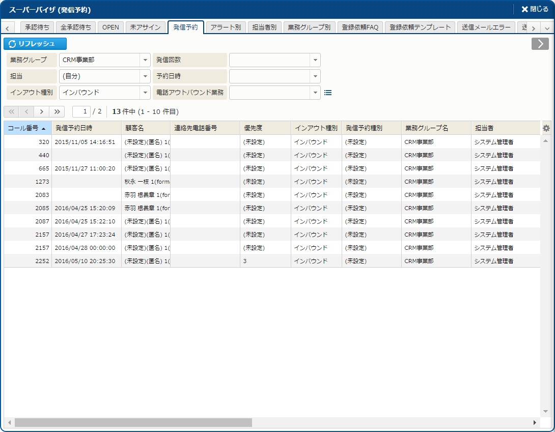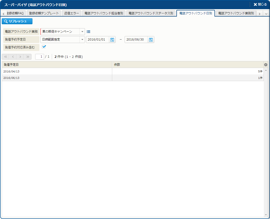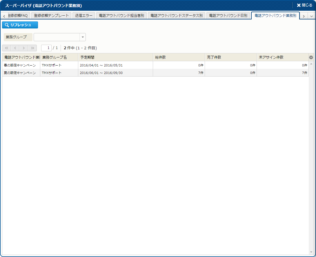 | 電話アウトバウンド業務名 | 電話アウトバウンド業務を指定後 [リフレッシュ] をクリックすると、一覧がフィルタ表示される。 |