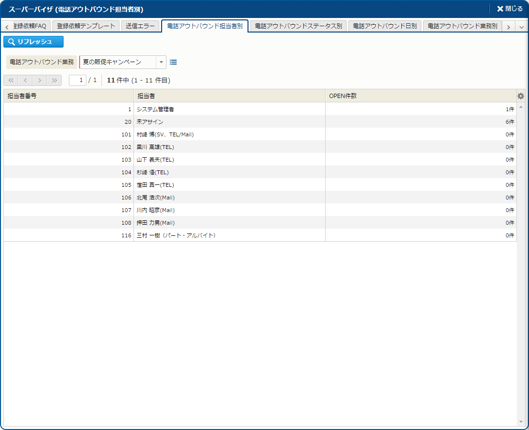 | OPEN件数 | ステータスがOPENの電話アウトバウンド業務コール件数。 |