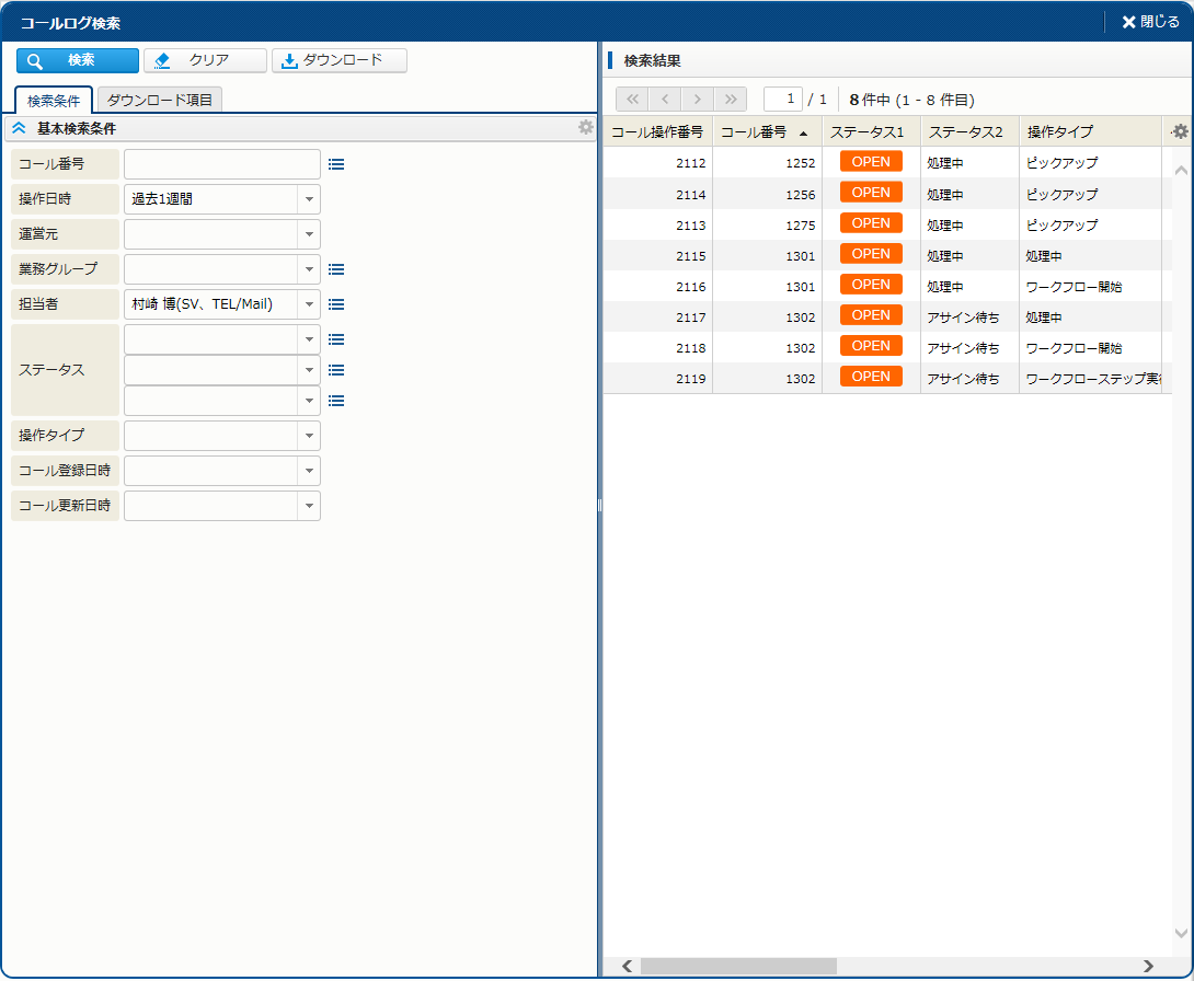 | ダウンロード | コールをダウンロードする。 | コールログ検索権限、コールログ検索参照権限 |