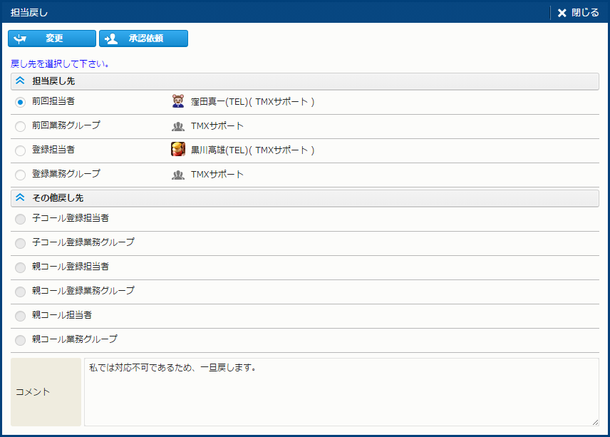 [ケースメイン] - [担当者変更]