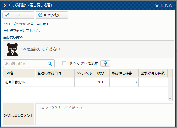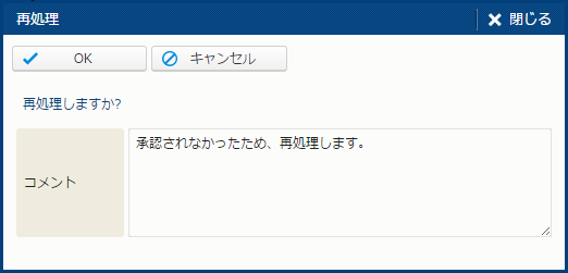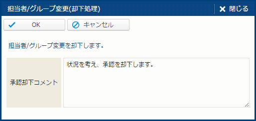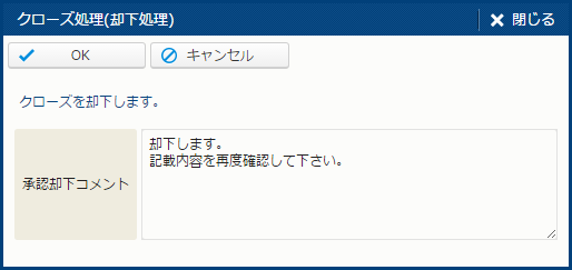 | OK | 差戻を実行する。 | - |