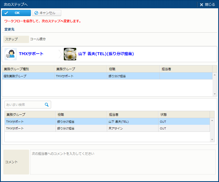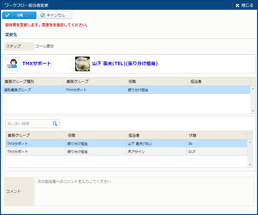 | OK | 担当者を変更する。 | - |
