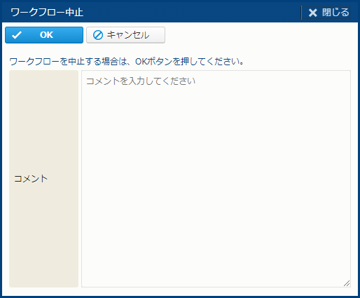 | OK | ワークフローを中止する。 | - |