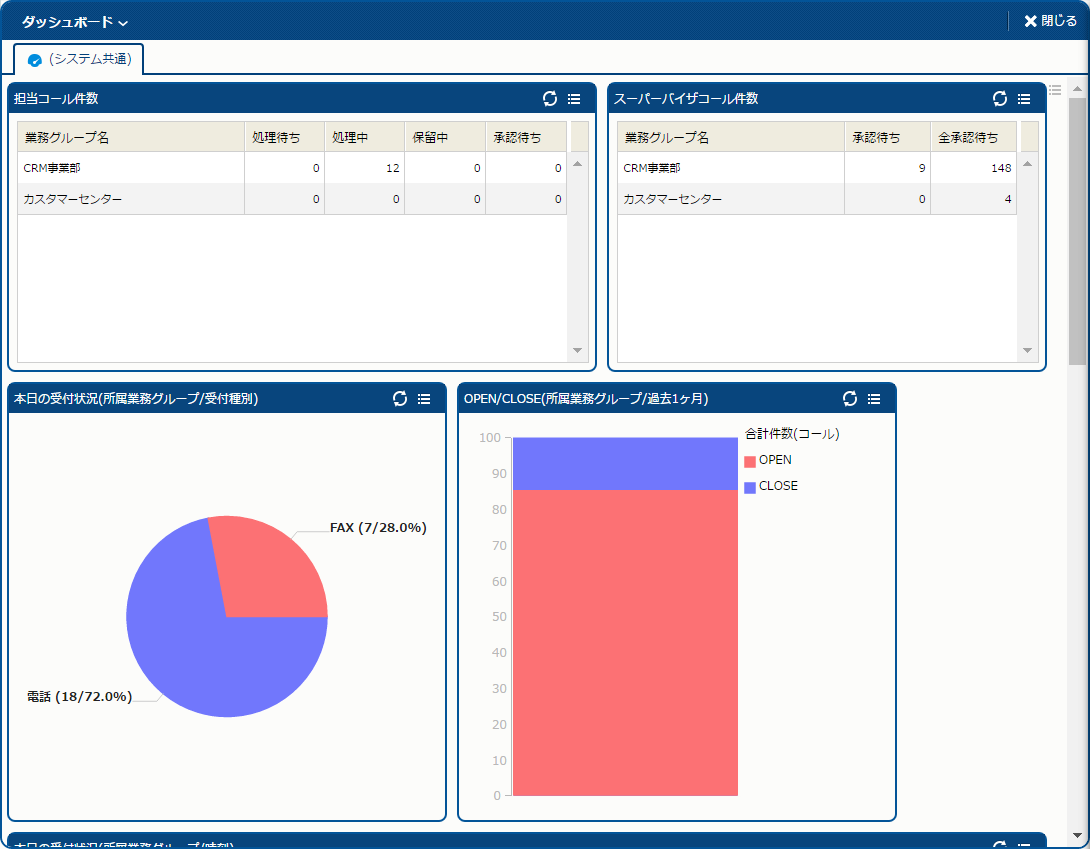 | 全承認待ち | - | - | - | その業務グループ内のすべての "処理待ち" ステータスのコール件数。 |