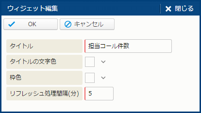 [担当コール件数] ウィジェットまたは [スーパーバイザコール件数] ウィジェット - [操作] - [編集]