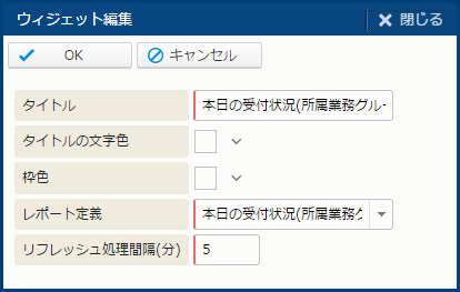 | リフレッシュ処理間隔(分) | ウィジェットを自動的にリフレッシュする間隔。初期値は、5 (分)。 |