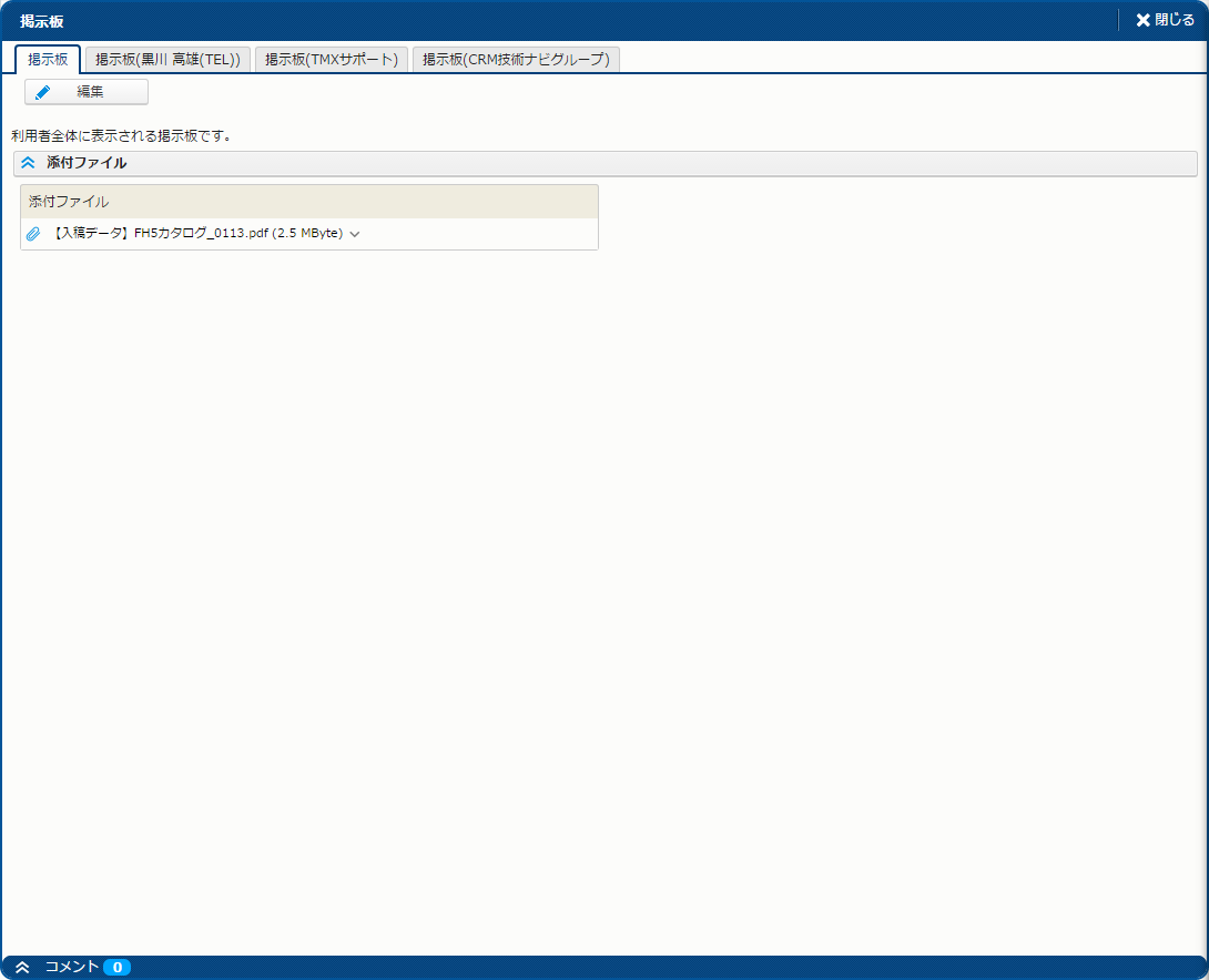 | 編集 | 記事を編集する。 | 掲示板業務グループ編集権限 |