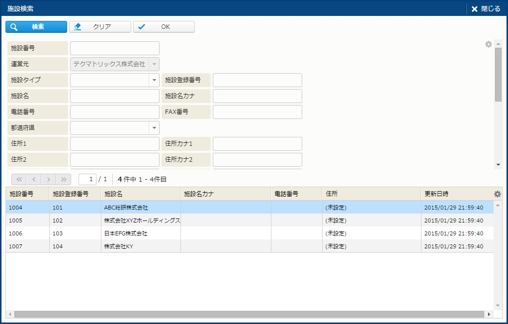 | OK | 該当する施設データを選択する。 | - |