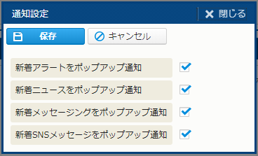 | 新着ニュースをポップアップ通知 | 新着ニュースが発生したら、ポップアップ表示で通知する。 |