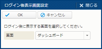 | ログイン後表示画面設定 | ログイン後最初に表示される画面を指定する。クリックすると、[ログイン後表示表示画面設定] サブウィンドウが表示される。 | - |