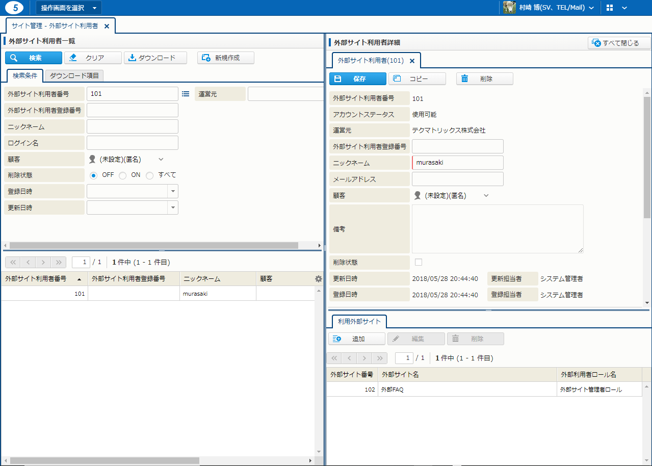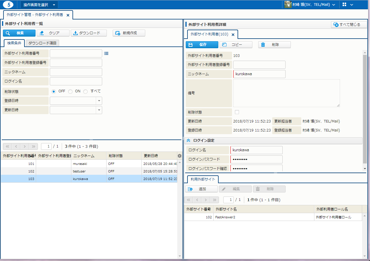外部サイト利用者詳細