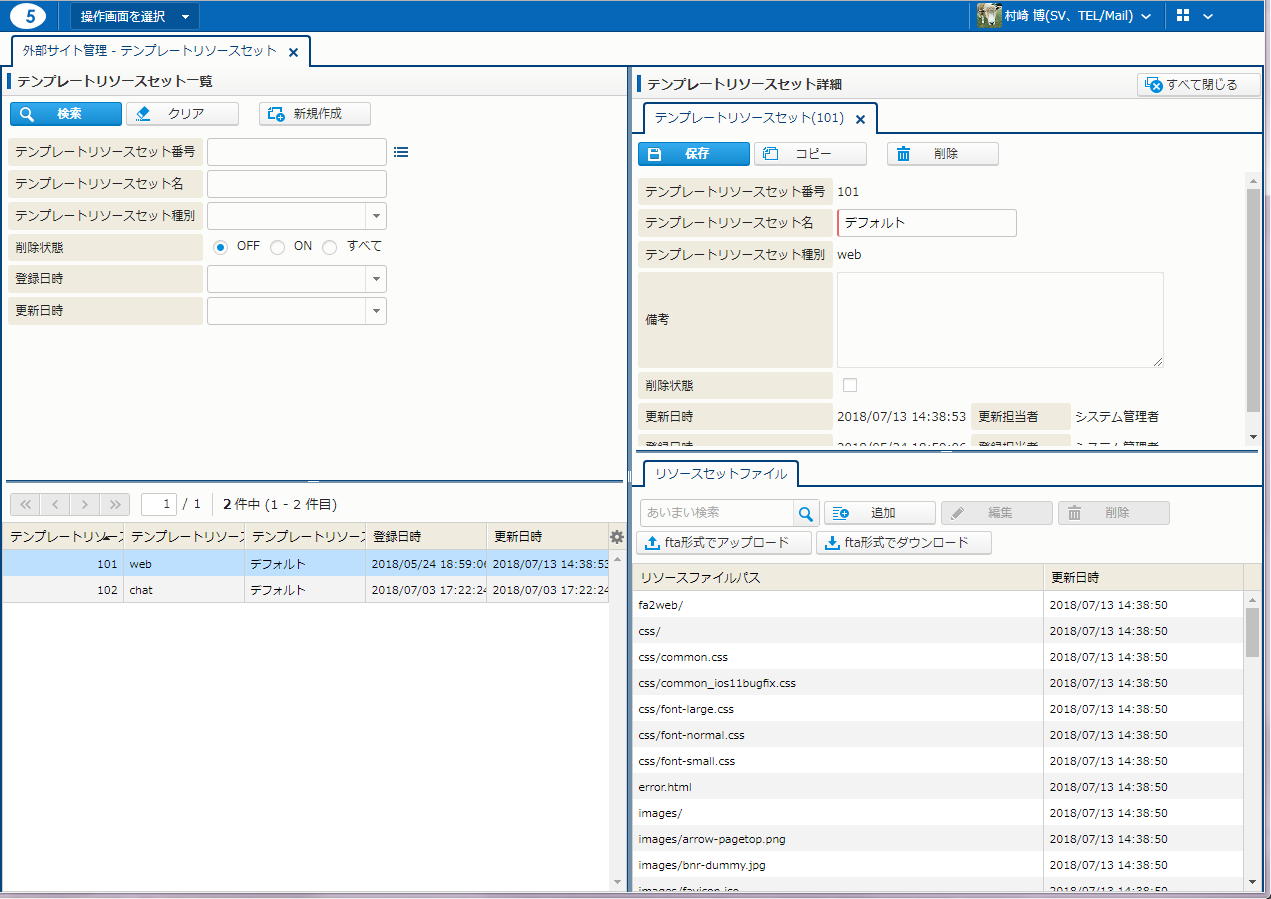 | 保存 | テンプレートリソースセットを保存する。 | テンプレートリソースセット新規権限、テンプレートリソースセット更新権限 |
