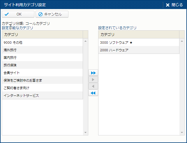 | カテゴリ分類 | [入力タイプ] に "コールカテゴリ" を指定した時に表示される項目。カテゴリ分類を指定できる。 |