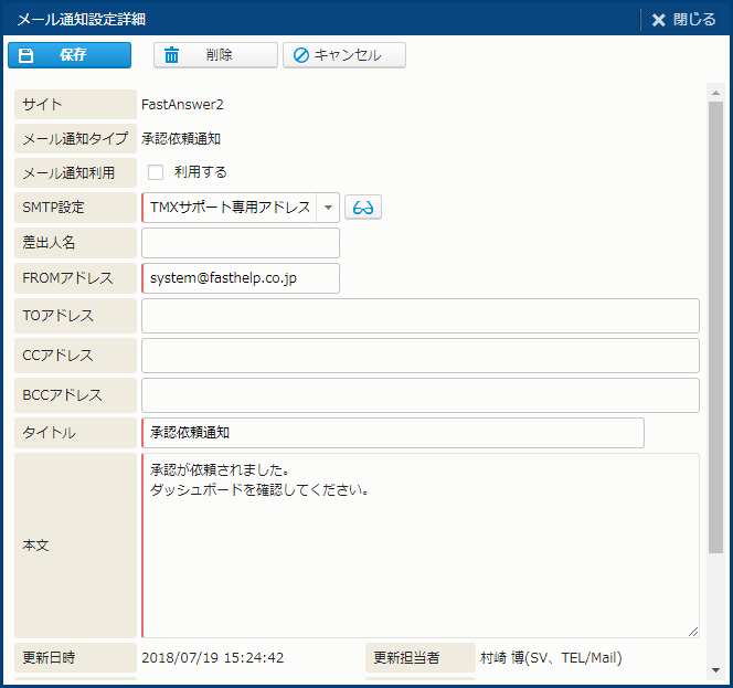 | FROMアドレス | - | - | - | 通知の FROM アドレス。 |