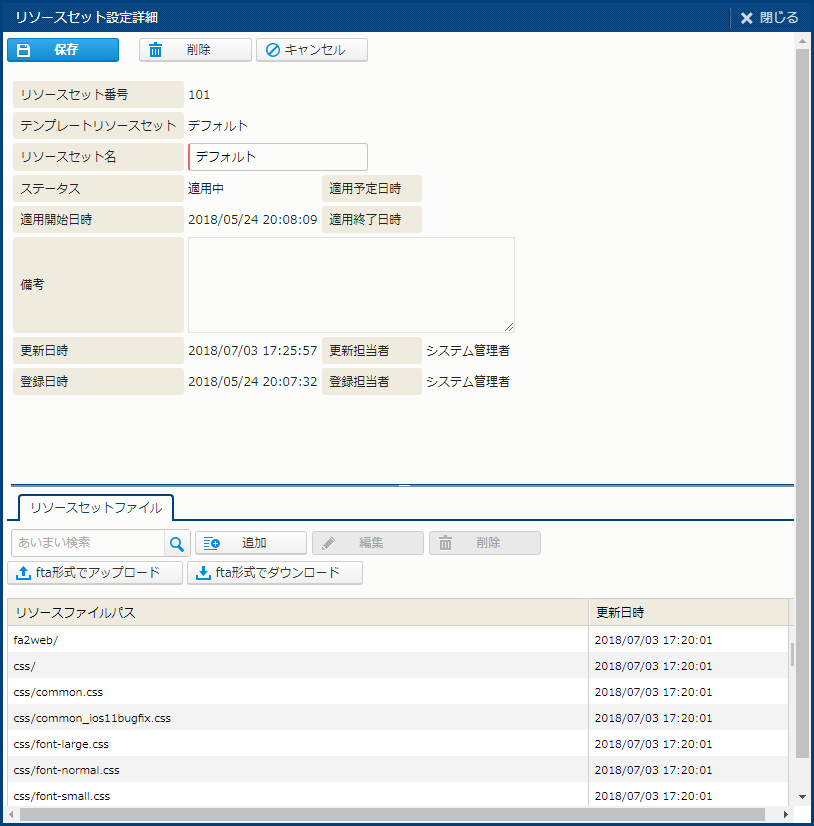 | 適用中 | - | - | - | 適用中のリソースセットの場合、"〇" が表示される。 |