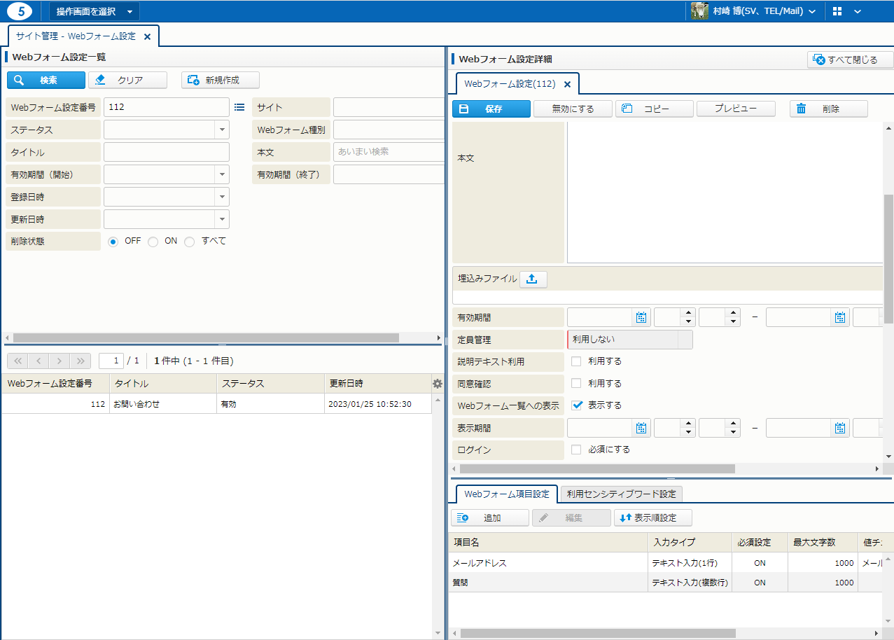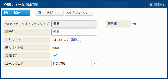 WEBフォーム項目詳細