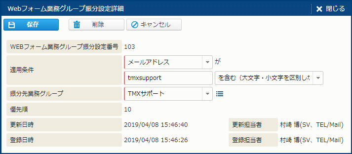 Webフォーム業務グループ振分設定詳細