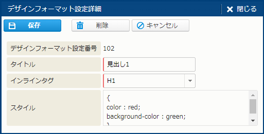 | タイトル | - | - | - | デザインフォーマット設定の名前。 |