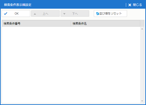 | OK | 検索条件表示順を確定し、画面を閉じる。 | - |