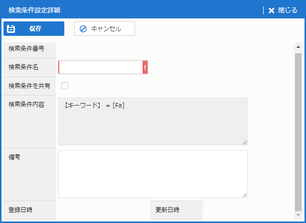 | 検索条件を共有 | 検索条件を共有する場合、チェックボックスをオンにする。 |