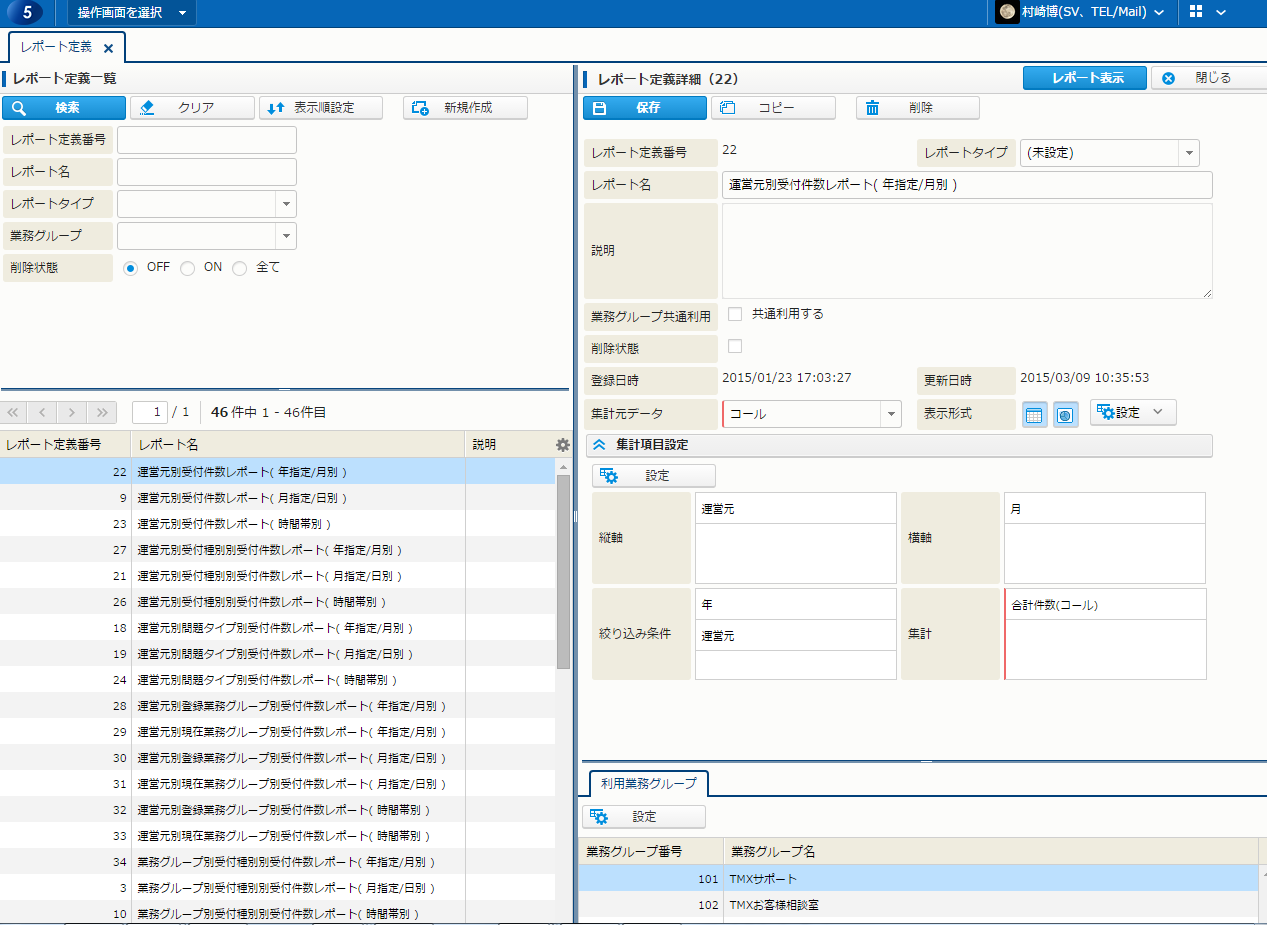 レポート定義利用業務グループ