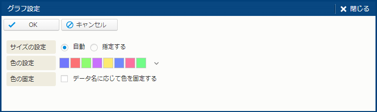 | 色の固定 | - | チェックボックス | - | データ名に応じてグラフの色を固定する場合にチェックする。 |